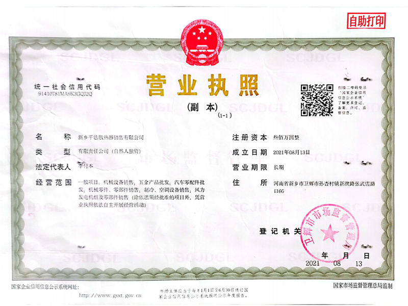 新鄉(xiāng)平法散熱器有限公司,成立于2021年8月 。地址位于河南省衛(wèi)輝市新濮路張武店大路口,主要經(jīng)營:水散熱器、中冷器、油冷器、板式換熱器、管殼式換熱器等;
